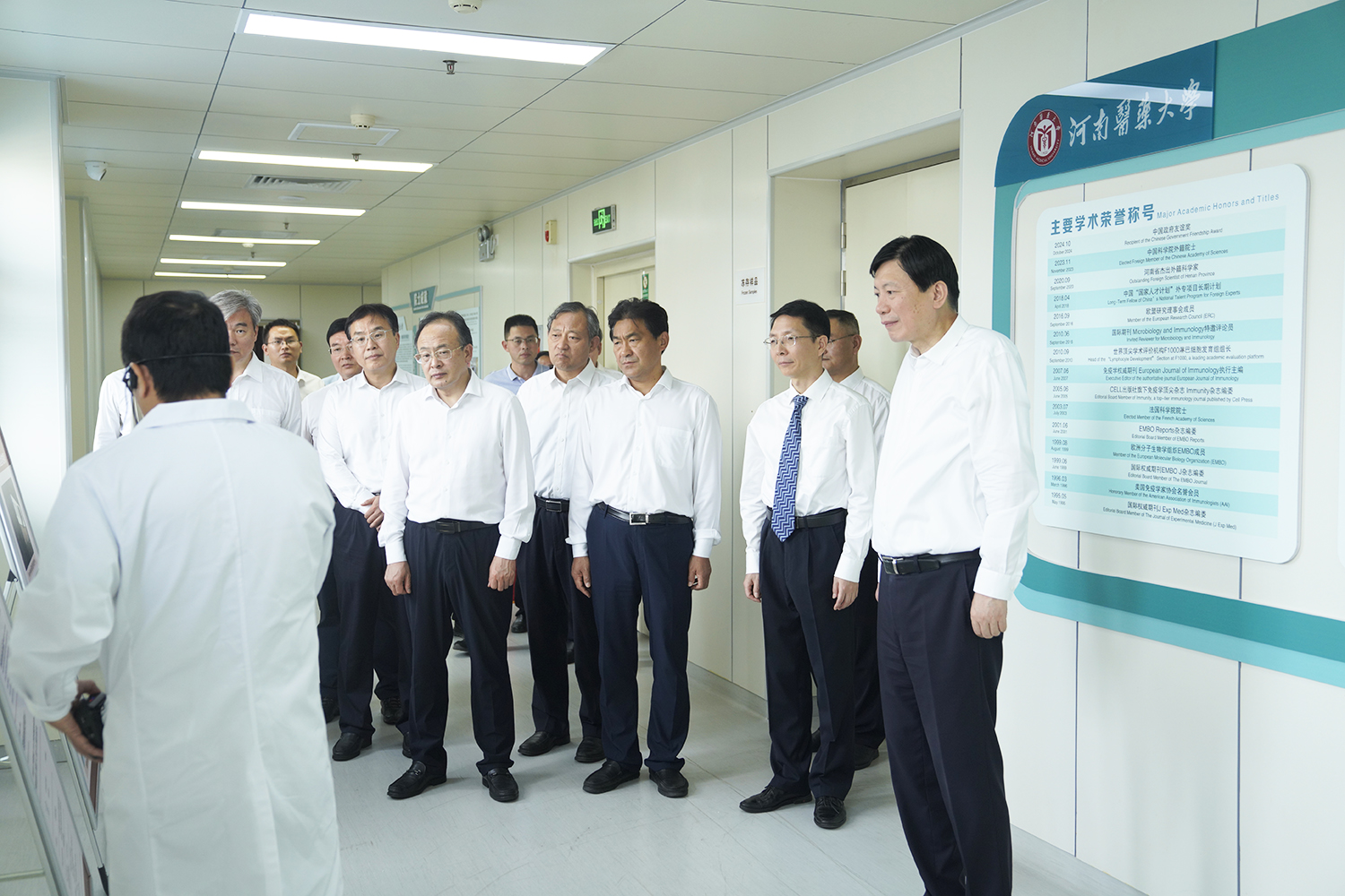 新乡市四大班子领导先后来到我校国家高等学校学科创新引智基地、中原再生医学实验室、重组蛋白药物实验室、干细胞与生物治疗技术研究中心、精神神经研究院等实验室和科研机构,调研考察创新平台建设、科技成果转化和高层次人才队伍建设等情况,对我校近年来科技创新及成果转化工作取得的成绩表示高度肯定。