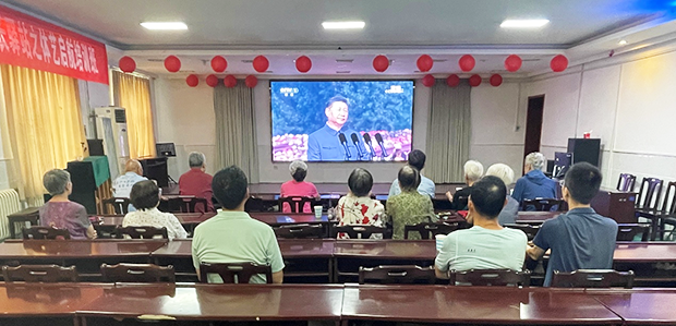 离退休职工党委组织离退休老同志采用“集中观看+分散观看”相结合的方式,收看纪念中国人民抗日战争暨世界反法西斯战争胜利80周年大会直播。观看过程中,大家全神贯注,沉浸在庄严肃穆的纪念大会氛围中。退休老同志夏老师眼含热泪,哽咽着说:“我们赶上了好时代,感谢党,感谢祖国,祝愿祖国繁荣昌盛!”离退休职工党委负责人表示,通过观看直播,老同志深化了历史认知,增强了民族自豪感,希望广大师生以抗战先辈为榜样,为实现中华民族伟大复兴的中国梦而努力奋斗。