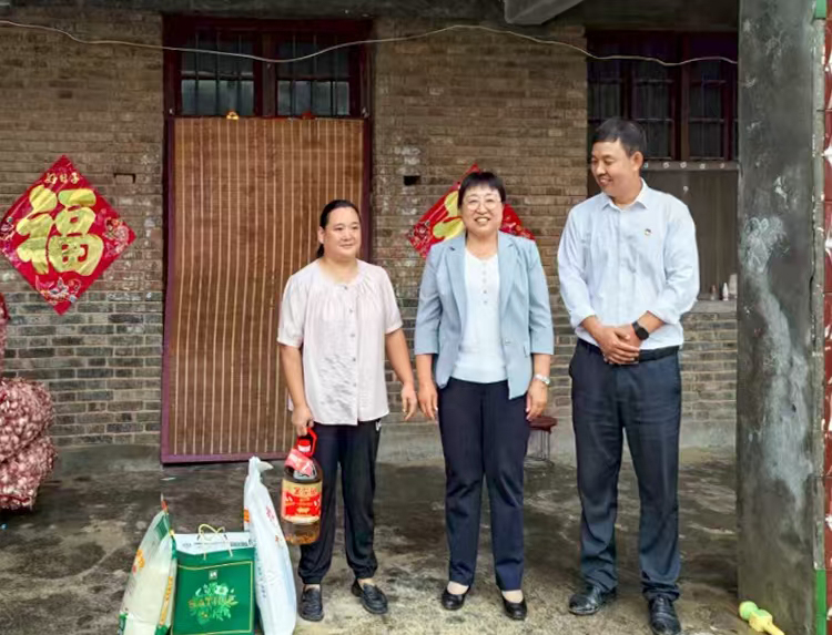 “金秋助学”活动结束后,郭凯英一行心系群众,专程深入村中部分五保户和生活困难户家中进行走访慰问。每到一户,她都与困难群众促膝谈心,细致询问他们的身体健康状况、家庭生活情况和面临的实际困难,并代表学校送上了米、面、油等慰问品,鼓励他们保持乐观心态,积极面对生活。这份来自学校党委的深切关怀,如秋日暖阳,穿透细雨,实实在在地温暖了困难群众的心田。