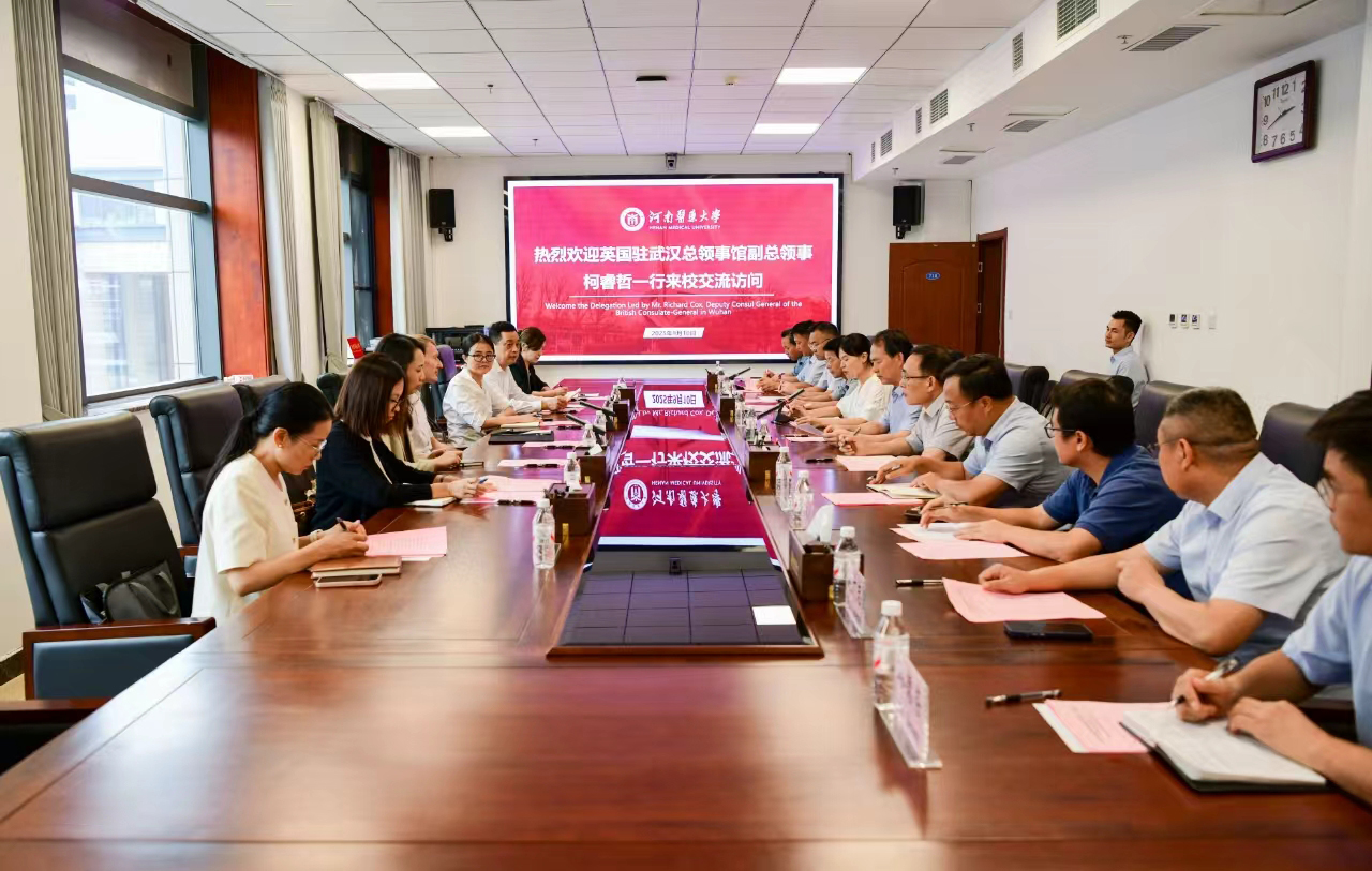9月10日,英国驻武汉总领事馆副总领事柯睿哲(Richard Cox)率代表团访问我校,双方就进一步推动中英在医学教育、科学研究、师生交流等领域的合作举行座谈会。省委外办欧洲工作处高云鹭主任、新乡市委时水利副秘书长等领导陪同访问。校党委委员、副校长雒保军出席,相关部门负责人参加活动。