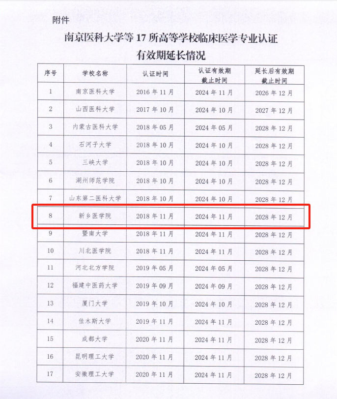 近日,教育部教育质量评估中心、教育部临床医学专业认证工作委员会发布《关于公布南京医科大学等17所高等学校延长临床医学专业认证有效期结论的通知》(教评中心函〔2025〕52号),我校临床医学专业认证有效期获准延长4年,总期限达10年,即至2028年12月。此次认证期的延长,是对我校临床医学专业在过去一个认证周期内持续改进、追求卓越所取得成效的充分肯定,标志着我校医学教育质量保障体系进入持续深化和发展的新阶段。
