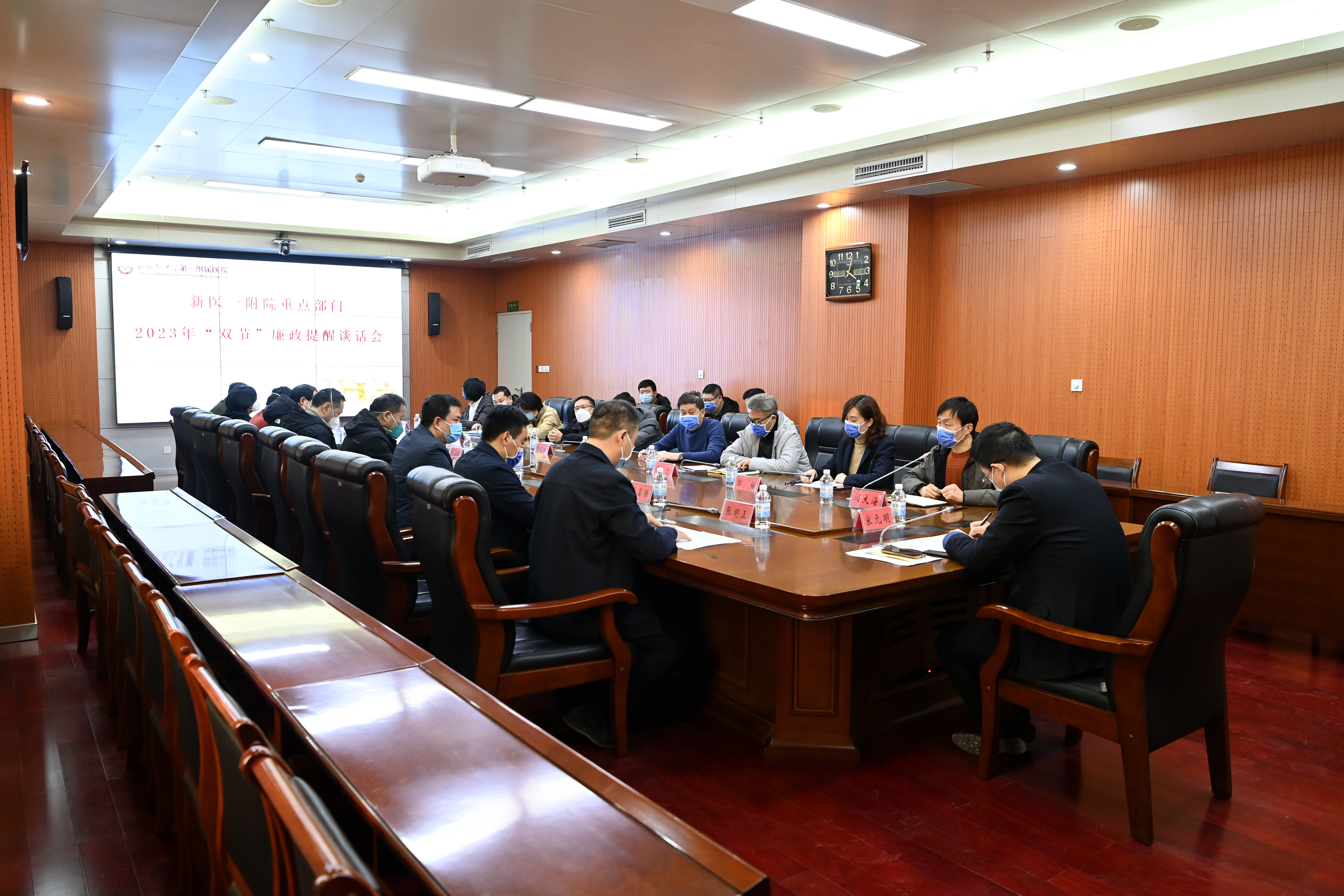 12月30日,一附院在规培楼六楼会议室召开重点部门2023年“双节”廉政提醒谈话会。医院党委书记宋元明、纪委书记张明正出席会议,医院人力资源部、后勤服务和管理部、基建管理部等15个重点部门负责人参会。