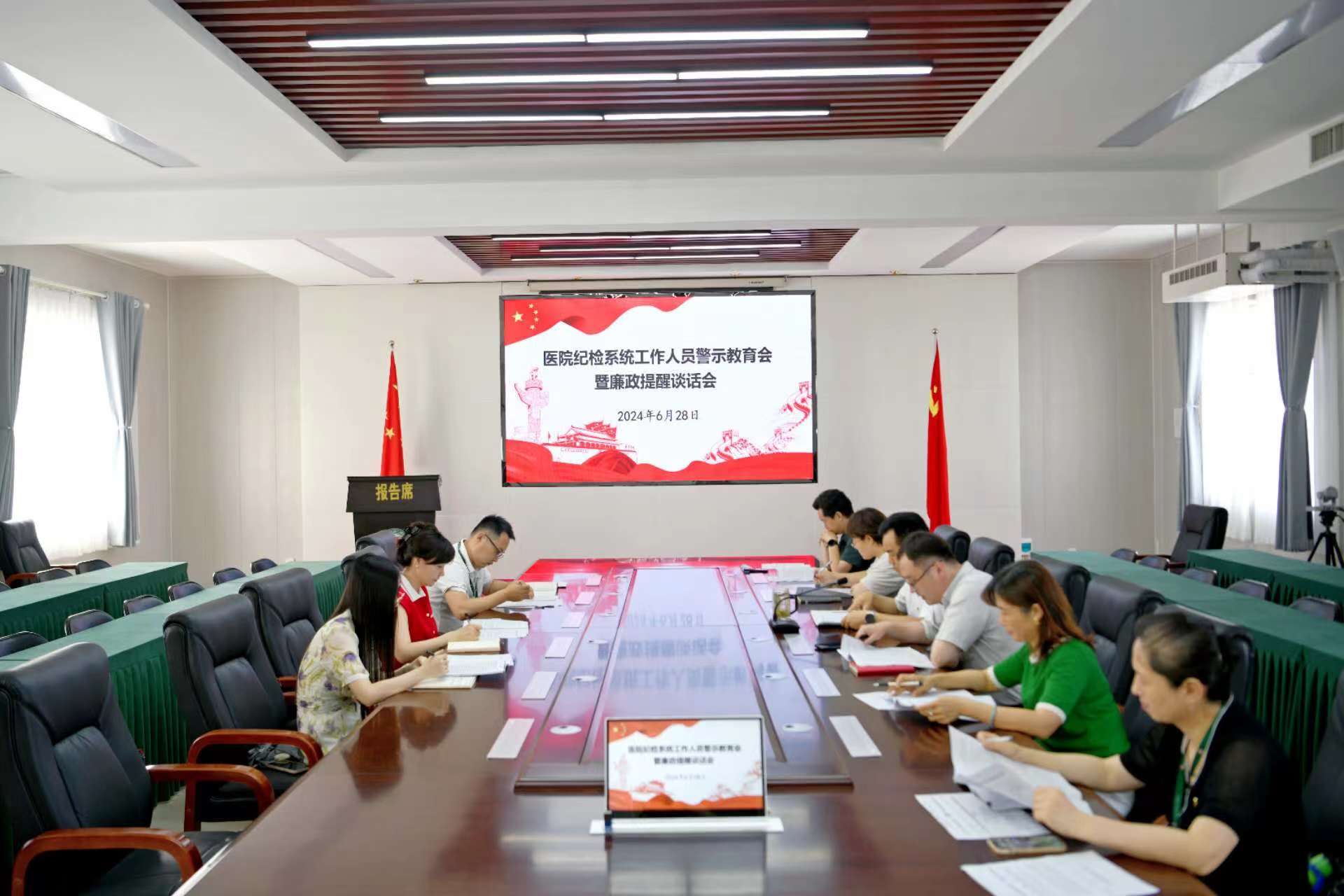 为推动党纪学习教育深入开展,强化纪检干部遵纪守纪执纪,切实做到“打铁必须自身硬”,6月28日下午,第三附属医院召开纪检工作人员警示教育会暨廉政提醒谈话会。医院纪委书记高富强出席会议并讲话,在职纪委委员、专职纪检工作人员参加会议,邀请相关部门负责人列席会议。