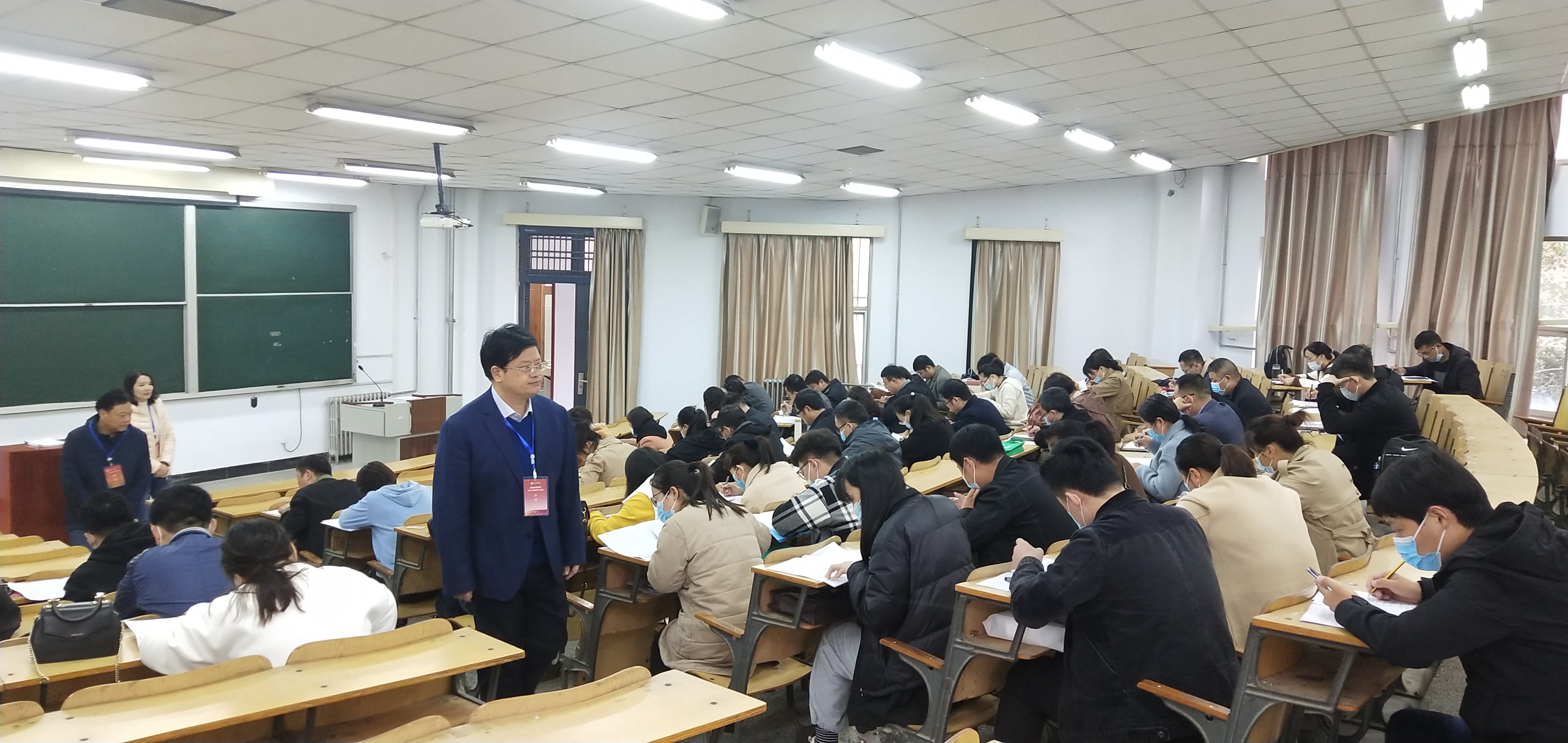 为确保本次毕业统考工作顺利平稳进行,学院领导班子多次召开会议,严格按照学校疫情防控要求,要求学生进校戴口罩、测体温等做好防疫措施,确保考试过程安全、有序、平稳进行。