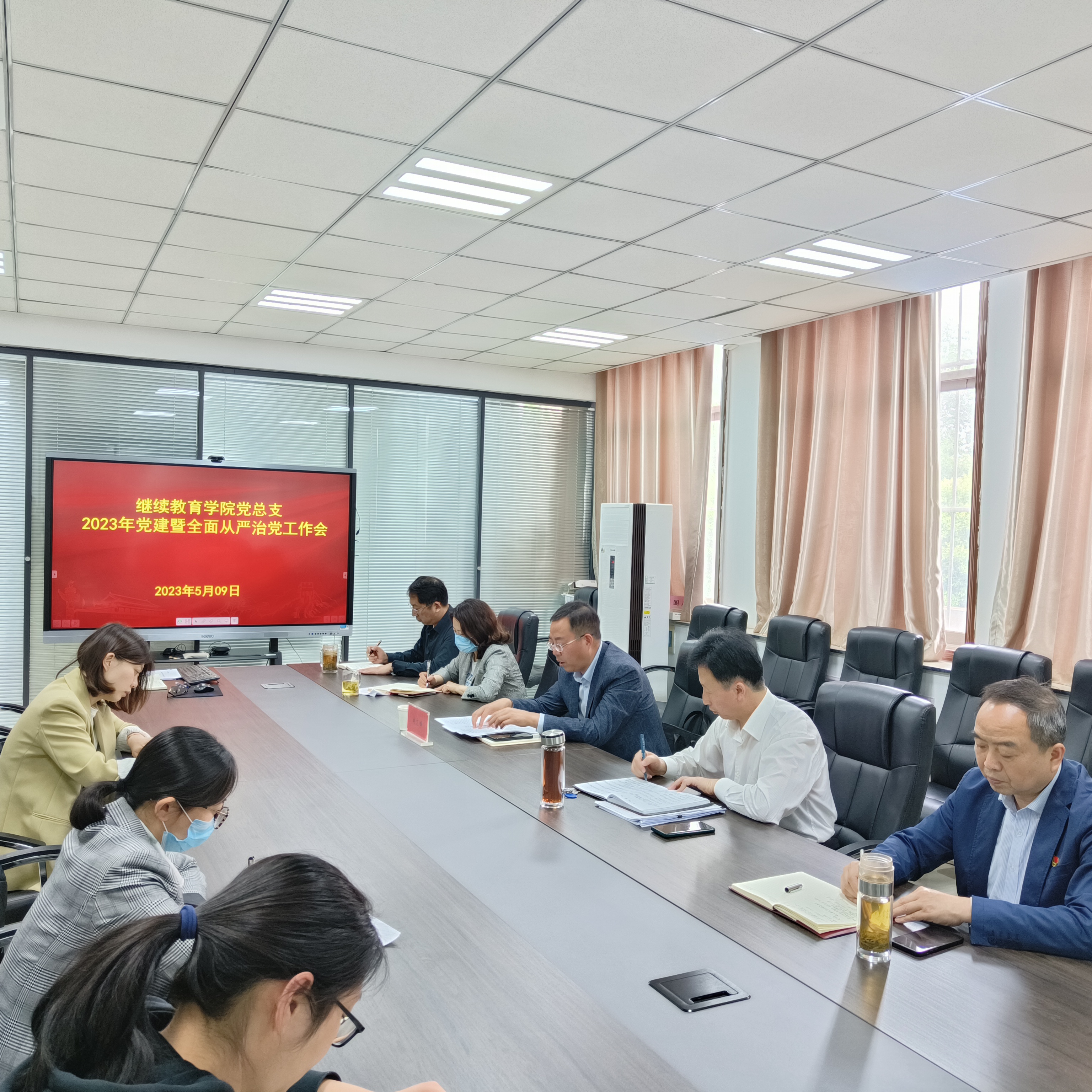 5月9日下午,继续教育学院2023年党建暨全面从严治党工作会议在第一会议室召开,学院党总支全体党员参加会议,校纪委副书记、纪委(监察专员办公室)综合室主任赵文峰应邀出席会议,会议由党总支负责人主持。