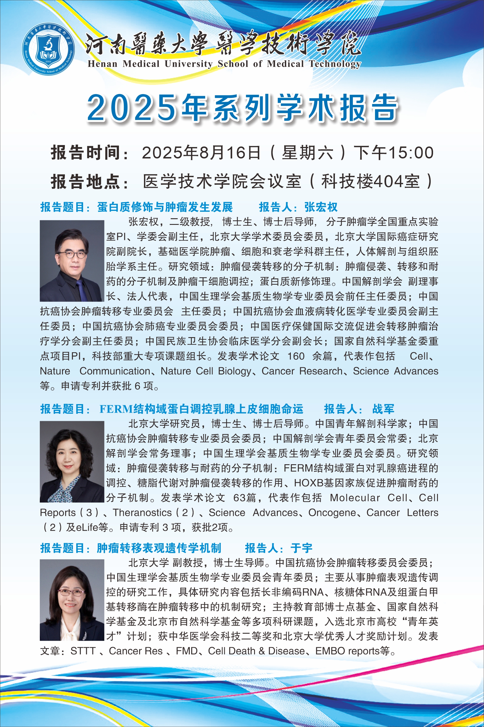 【学术报告】医学技术学院2025年系列学术报告(六)