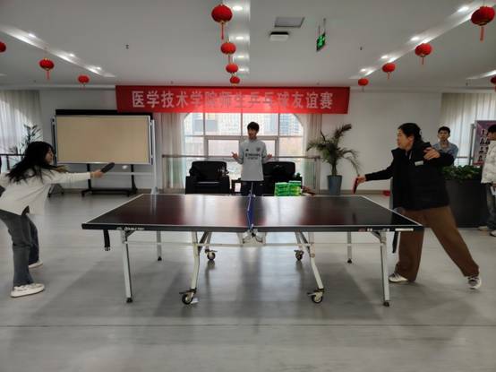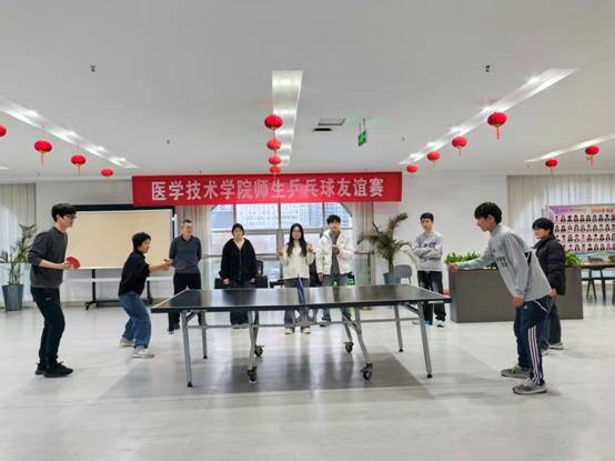 为丰富校园文化生活,展现学院师生良好的精神风貌,促进师生情感交流,医学技术学院于12月7日,在科技楼四楼成功举办了师生乒乓球友谊赛。学院党委副书记吴子钊、副院长杨波一起参加了比赛。