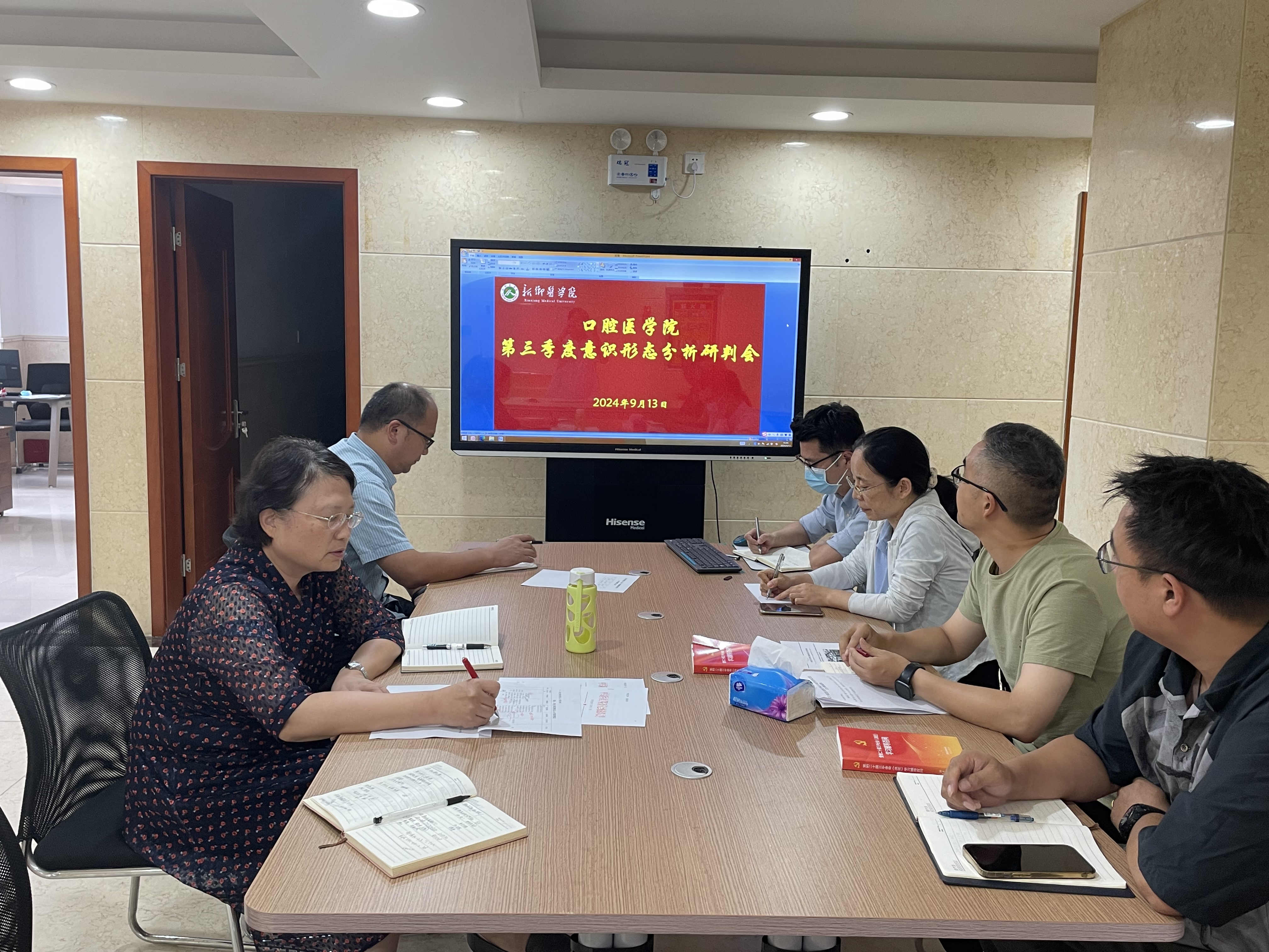 9月13日,我院在口腔医学院会议室召开2024年第季度意识形态工作分析研判会口腔医学院党总支书记、院长潘莹,副处级组织员刘迎辉及相关部门负责人参加会议。