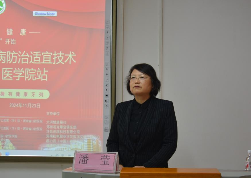 潘莹院长在致辞中介绍了学校的教学规模、师资力量、学生人数以及医学专业的发展情况。随后,重点介绍了口腔医学院的办学情况和取得的成绩,强调了培训班对提升口腔医学人才培养质量的重要性,并希望与会领导、专家和学员们能够共同交流合作,共谋发展。
