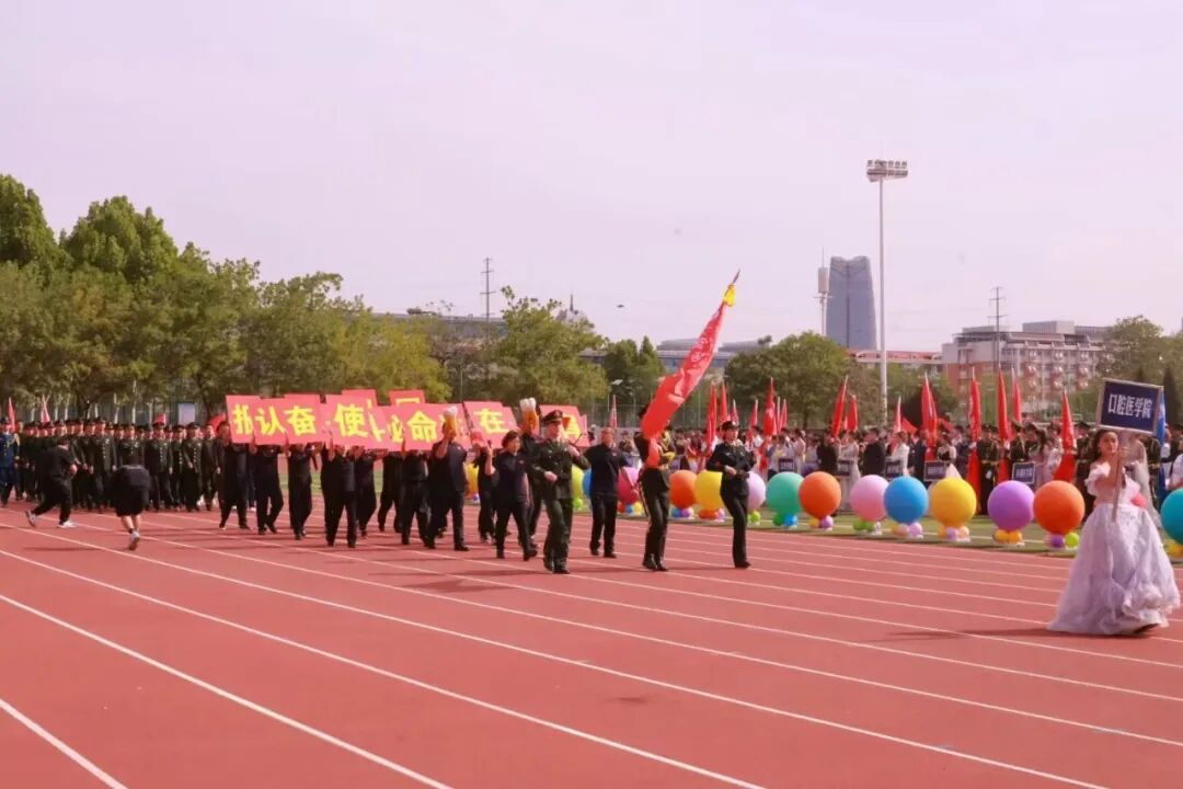 看,昂首阔步向我们走来的是口腔医学院代表队。这是一支退伍大学生组成的方队,他们以热血铸就忠诚,以担当书写青春。他们,是永不褪色的忠诚卫士,是精益求精的医学追梦人,是心怀大爱的健康使者。军旅生涯锻造了他们钢铁般的意志,医学之路培育着他们仁心济世的情怀。