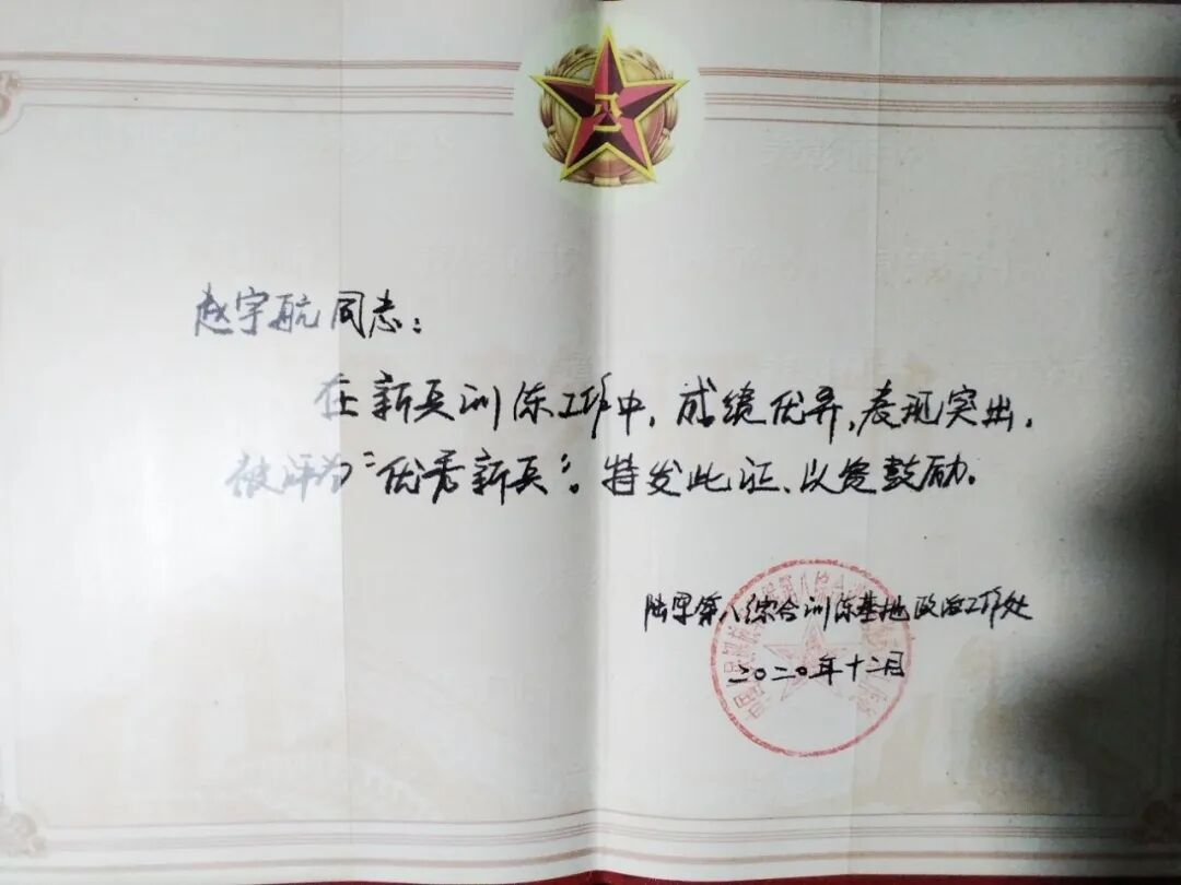 在最后的新兵营结业考核中,我以优异的成绩取得了我们连队的“优秀新兵”。回望这段旅程,每一步都凝聚着汗水与坚持。我深知,这份成绩不仅仅属于我个人,更是团队支持、家人鼓励以及帮助过我的班长和排长的共同成果。在此,我要向所有给予我力量的人致以最深的感谢。未来,我将带着这份荣誉继续前行,不断挑战自我,创造更多的可能。这段历程将成为我人生中最宝贵的财富之一,引领我在未来的军旅道路上勇往直前。
