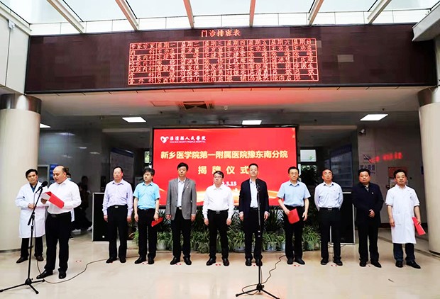 仪式最后,陈清江、梁超共同为我校第一附属医院豫东南分院揭牌。
