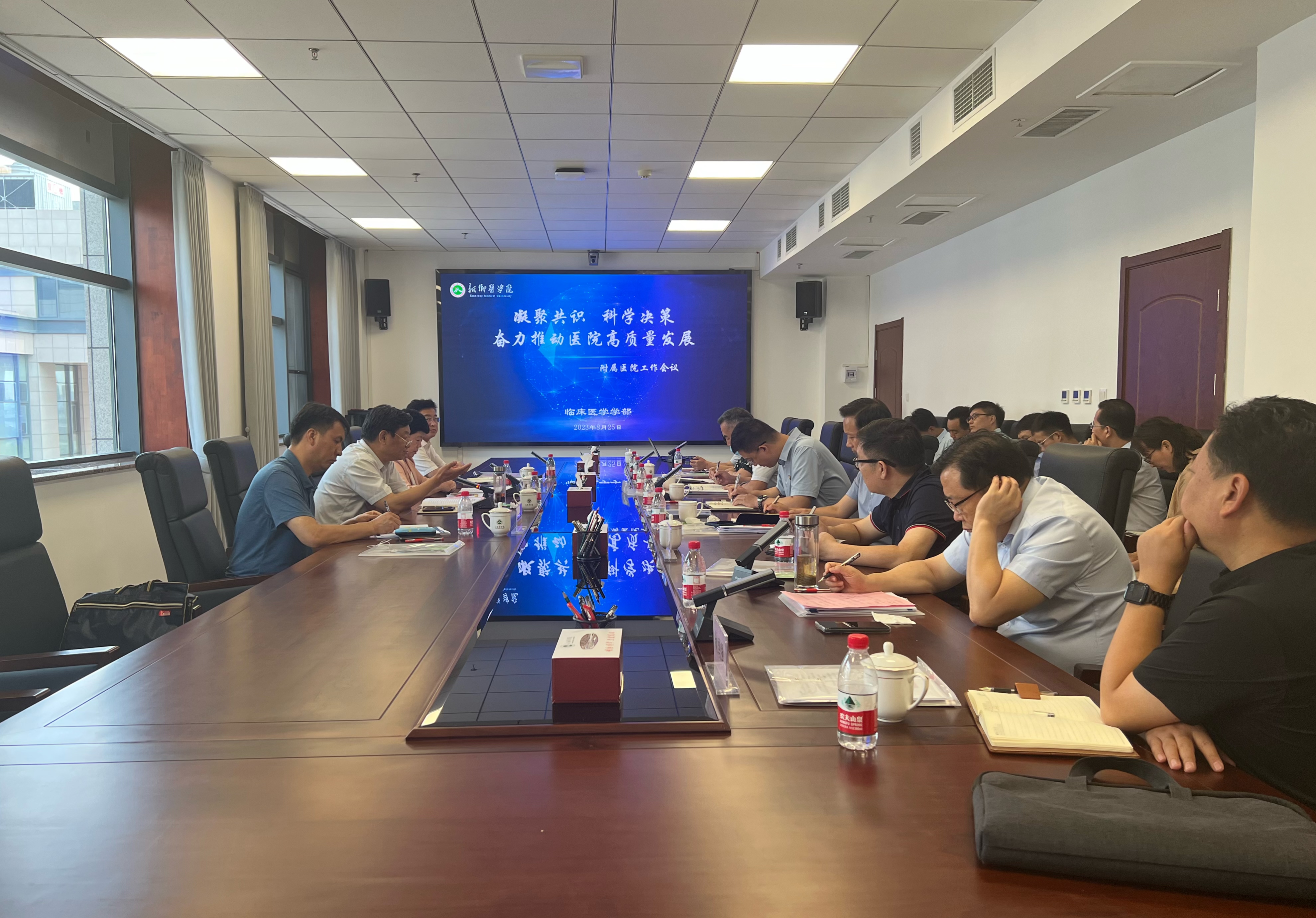 临床医学学部相关负责人通报了2023年上半年附属医院关键指标考核工作的相关事项、附属医院运行监测指标分析情况,介绍了关于临床医学学科专业建设成效分析与对策。医学人文学院负责人介绍了医学人文素养提升的合作计划等。