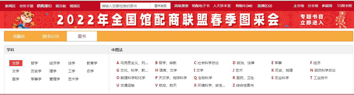 2.2 图书分会场:根据图书的中图法分类及学科分类展示各类图书,直接点击分类即可进入选书界面