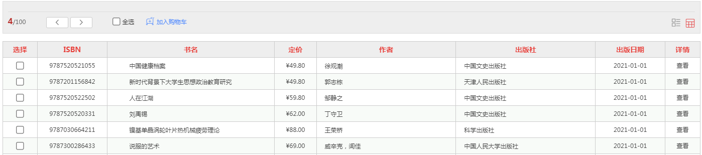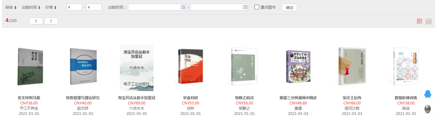 1.1 平台可按图书的出版时间、定价排序。也可按价格区间、出版时间段、重点图书【即图书馆关注的重点出版社】进行筛选。