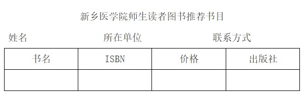 一、读者按照下列表格填写自己所需图书内容,发送至图书馆邮箱xxmulib@xxmu.edu.cn即可。