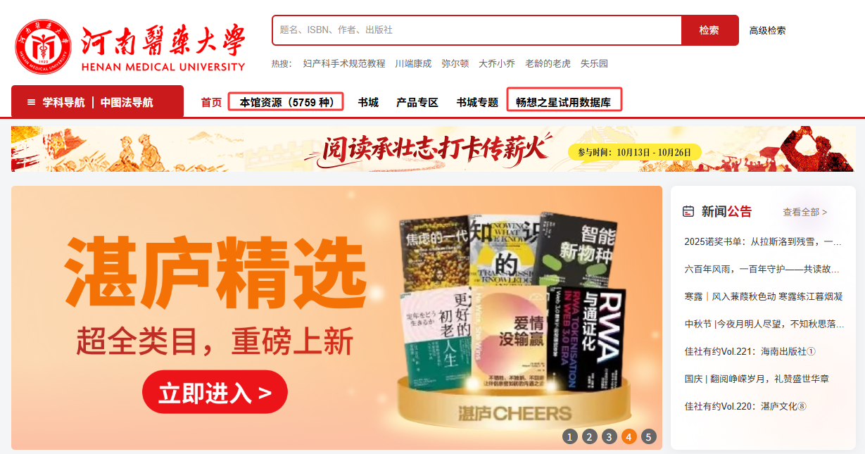 河南医药大学2025年电子图书读者自主决策采购PDA及有奖阅读积分打卡活动
