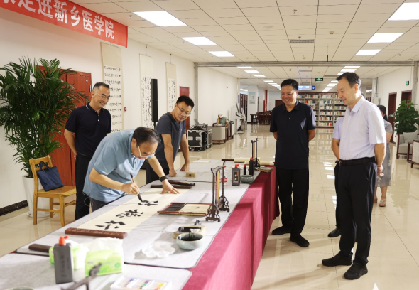 为深入推进特色鲜明的现代化医科大学建设,推进中华优秀传统文化进校园,8月4日至5日,由河南省文学艺术界联合会、河南省书法家协会、我校图书馆主办,党委宣传部、医学人文学院协办的传统文化进校园之“文润新医、书写中国”——书法名家走进华亿在线手机版(大中国区)主题活动在图书馆举行。河南省书法家协会主席吴行,河南省书法家协会副主席郑庆伟、王乃勇,河南省青年书法家协会副主席洪丰仓,河南师范大学美术学院教授刘凤山到会挥毫泼墨,将书法艺术送进校园。