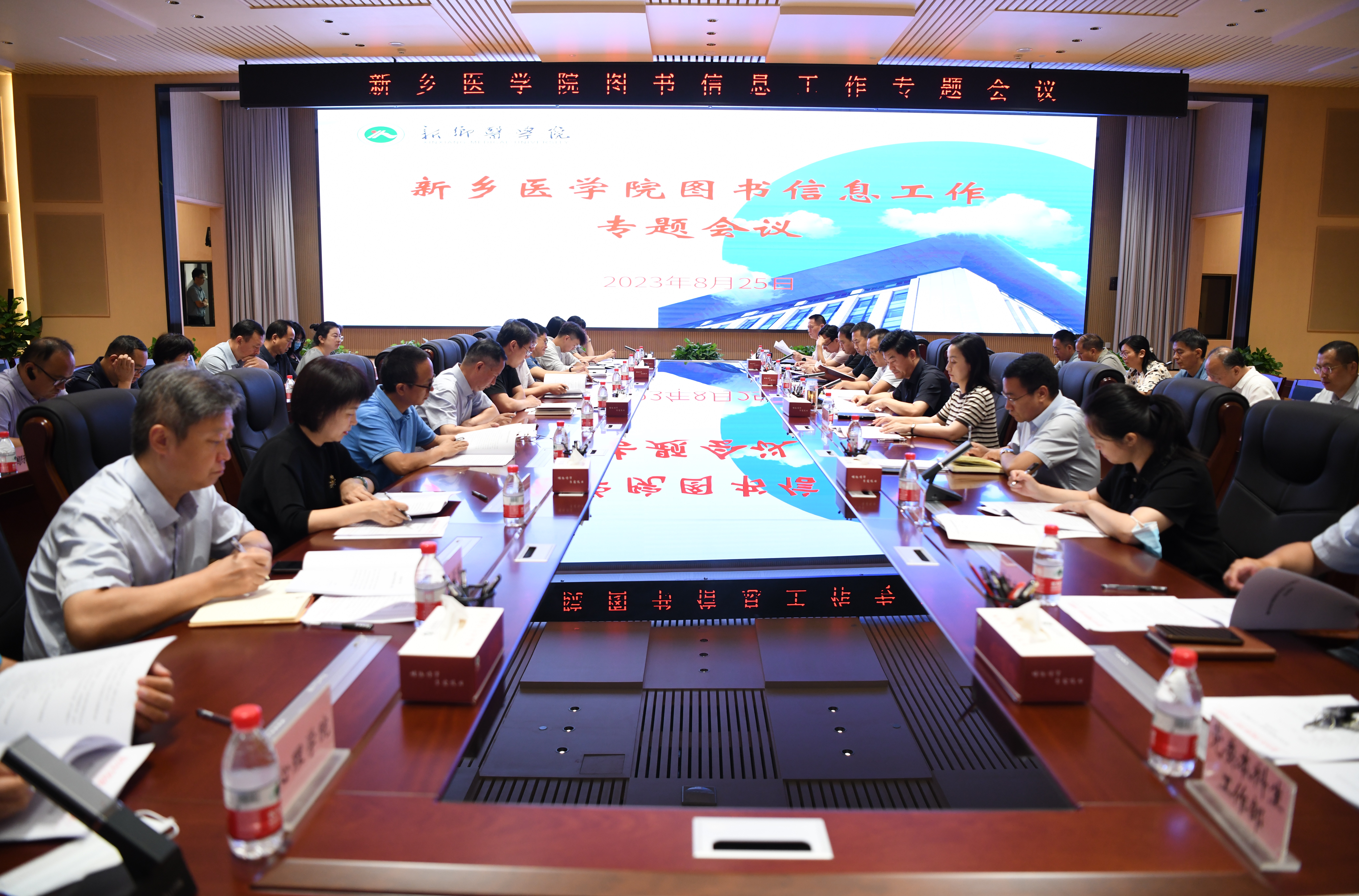 与会人员集体学习了教育部《普通高等学校图书馆规程》;图书馆馆长刘波涛从学校图书馆基本情况、纸质文献资源建设现状、电子资源建设现状、下一步建设思路等四个方面就学校图书信息工作进行了汇报;大家围绕学校图书文献资源建设情况进行了充分讨论,并就加强图书信息工作建设提出了意见建议。