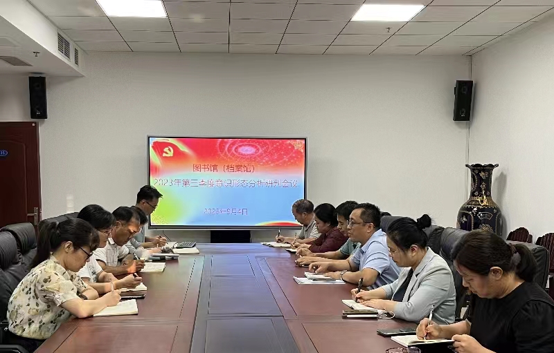 按照学校工作安排,9月4日下午,图书馆召开2023年第三季度意识形态工作分析研判会,深入贯彻落实中央、省委和学校党委关于意识形态工作的要求,切实开展意识形态领域分析研判。图书馆馆长刘波涛主持会议,图书馆全体科级以上干部参加会议。