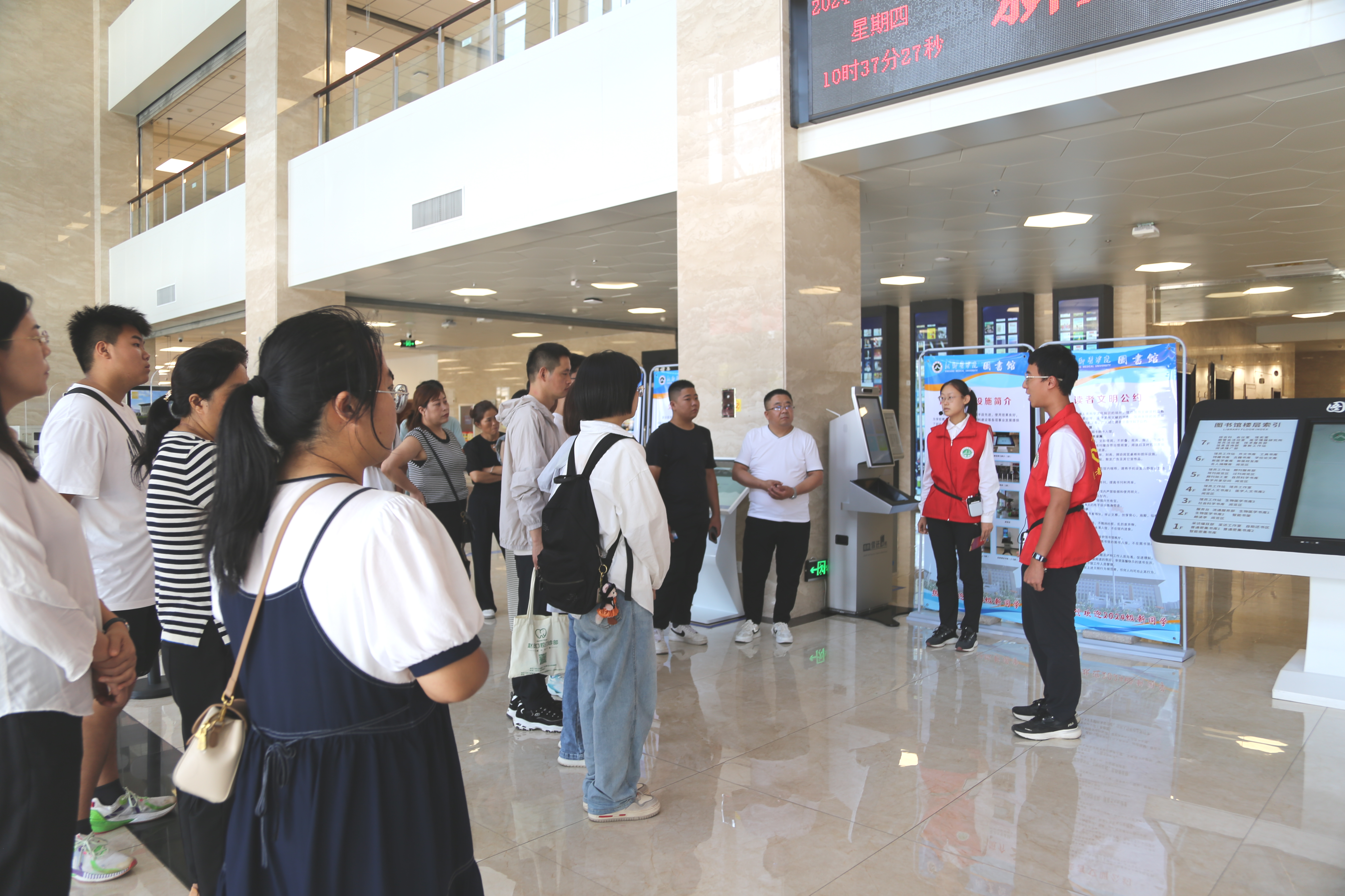 为了让2024级新生进一步了解图书馆的基本情况,充分利用馆内资源和服务,图书馆开展了迎新开放日活动。大学生图管会的6名志愿者讲解员带领新生及家长实地参观图书馆,详细介绍各楼层分布及功能分区,为新生讲解入馆注意事项、图书借还等操作流程并进行了现场演示,耐心解答了他们提出的一些问题;讲解员们准备充分、讲解熟练、声音清晰,获得了新生和家长们的一致好评。志愿者们还来到南北校区各个迎新点,向新生和家长介绍图书馆的基本情况,邀请他们到图书馆参观,感受图书馆浓厚的学习氛围,帮助新生迅速开启在图书馆读书学习的美好时光。