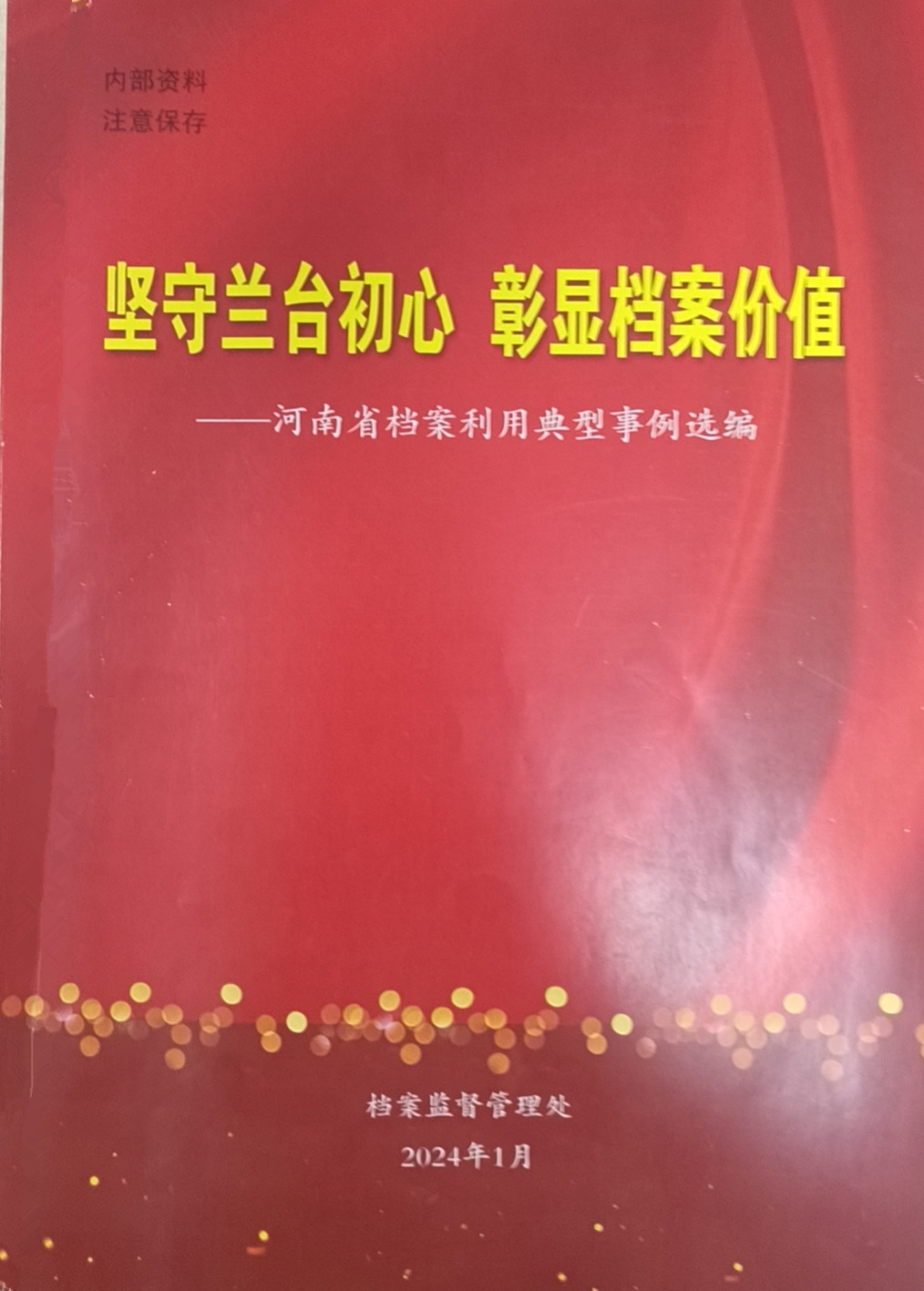 我校图书馆(档案馆)先进事例入选《河南省档案利用典型事例选编》