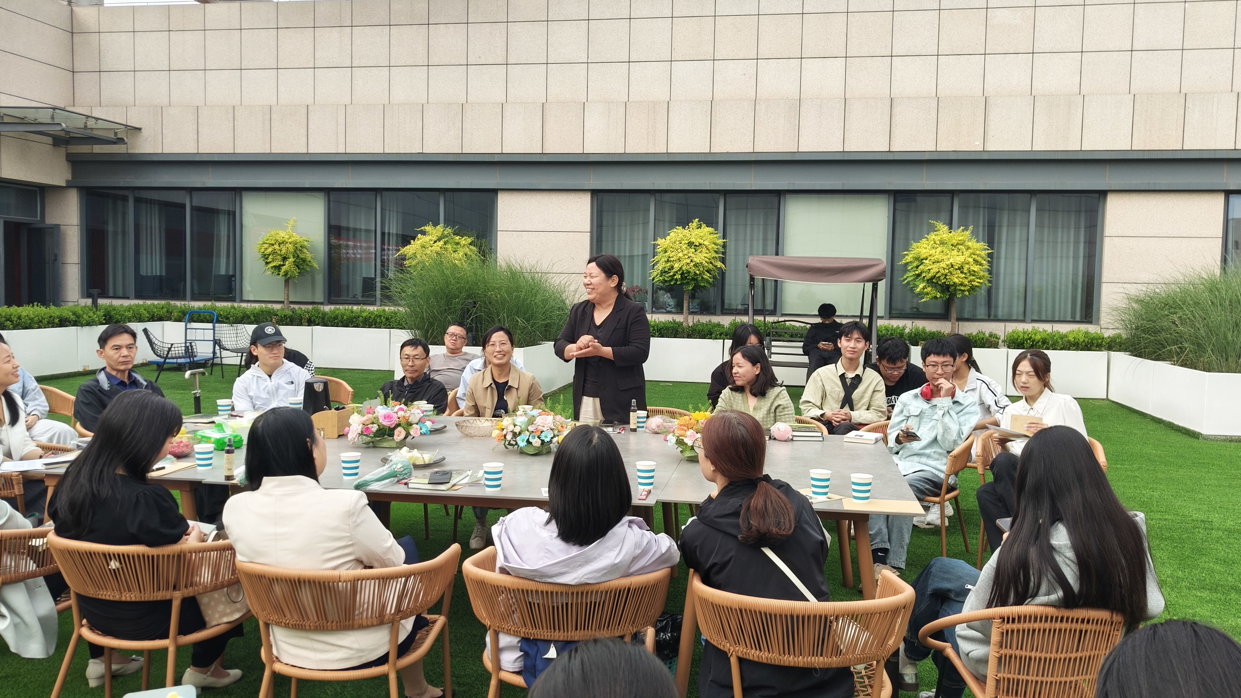活动最后,武俊芳进行了总结发言。她指出,这次的师生“心灵花园”读书分享会别具特色,策划精心,巧妙利用户外屋顶花园作为分享场地,让大家心情愉悦,更加激发出了分享的渴望和热情,将好书和热门图书搬到现场进行展览,并现场向大家讲解如何查阅馆藏资源,如何进行PDA电子图书自主荐购和纸质图书荐购采购流程讲解等分享,充分展示了图书馆作为学校书香校园文化建设重要阵地的主动作为与担当,为师生搭建了珍贵的读书交流学习平台,不仅是一次读书心得的交流,更是一场心灵与心灵的碰撞。她希望下一步校工会和图书馆深入交流探讨,把读书会打造成新医文化名牌项目,吸引更多地师生参与进来,为校园文化建设作出更大贡献。