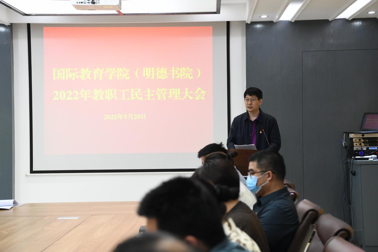 会上,审议并表决通过了《国际教育学院(明德书院)工作报告》、《工会委员会工作报告》、《国际教育学院“十四五”发展规划》、副院长刘基伟宣读了《新乡医学院国际教育学院(明德书院)2022年教职工民主管理大会决议(草案)》。