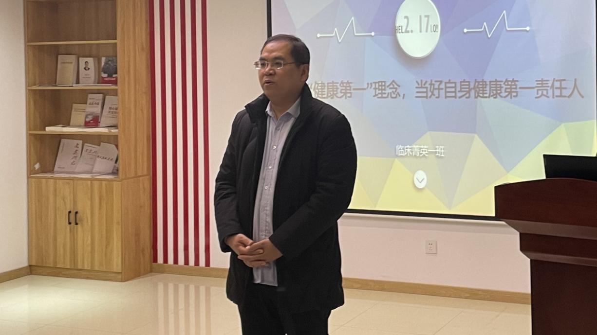 2月15日和2月19日下午,姬广军老师分别组织2022级菁英医师二班和2021级医学影像学六班全体同学在明德书院会议室召开“树牢‘健康第一’理念,当好自身健康第一责任人”主题班会。
