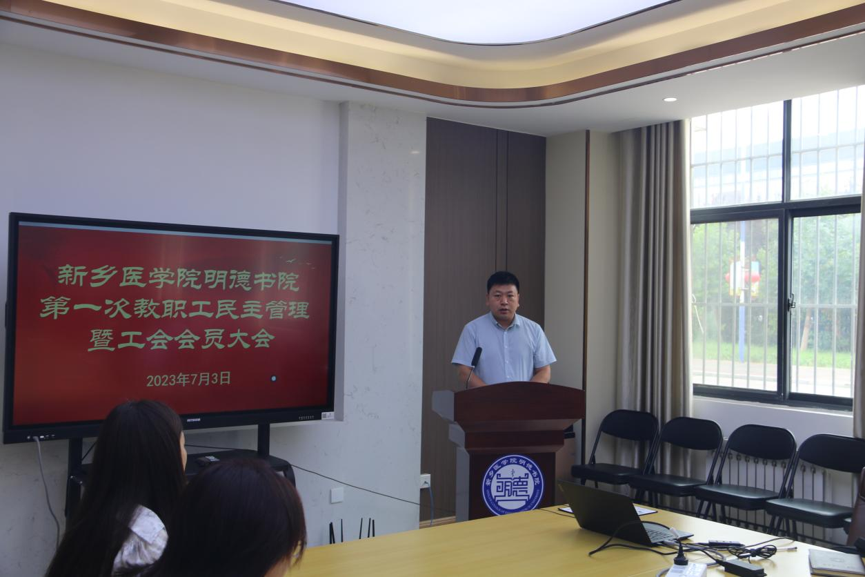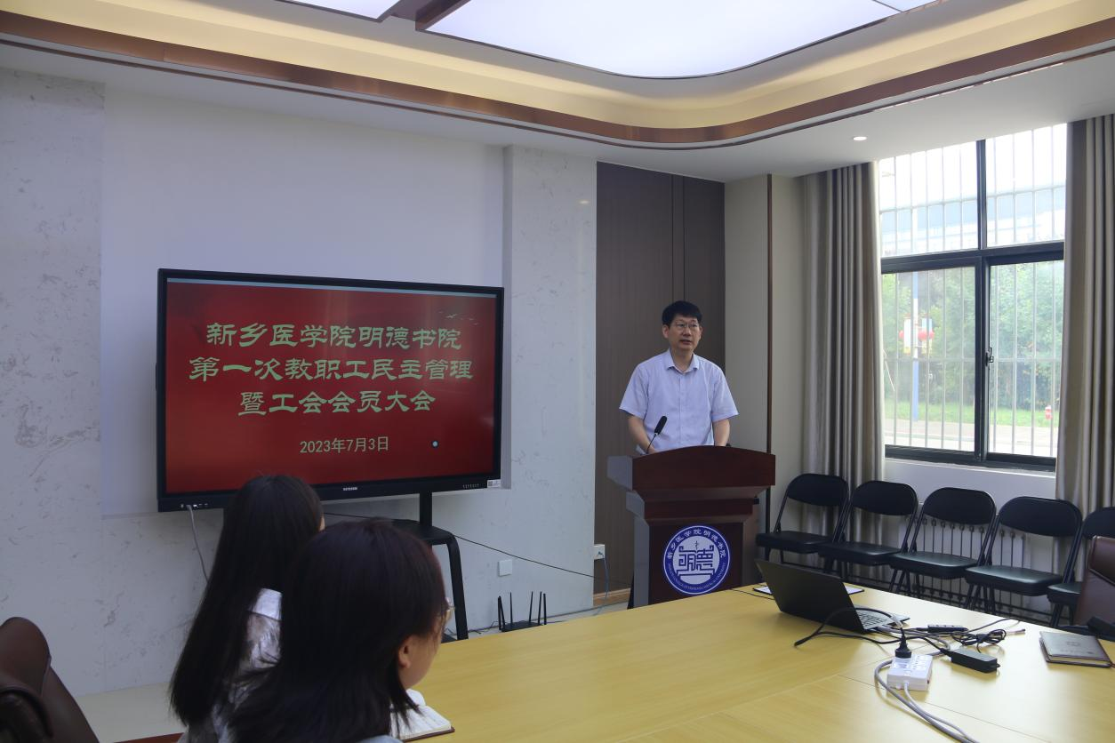 7月3日上午,明德书院第一次教职工民主管理暨工会会员大会在书院会议室召开,会议由院长邱永建主持,书院全体教职工参加了会议。