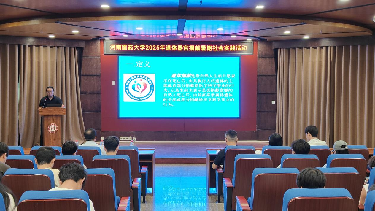 为贯彻落实健康中国战略与习近平总书记“人民至上、生命至上”的崇高理念,积极传播“人道、博爱、奉献”的红十字精神,鼓励青年学子在深入基层、深入社区的社会实践中长才干、增本领,6 月 27 日上午,河南医药大学 2025 年 “大爱传递 生命永续” 遗体器官捐献暑期社会实践活动启动仪式在学校第三报告厅顺利举行,来自全校 20 支队伍的负责老师及学生代表参加了启动仪式。