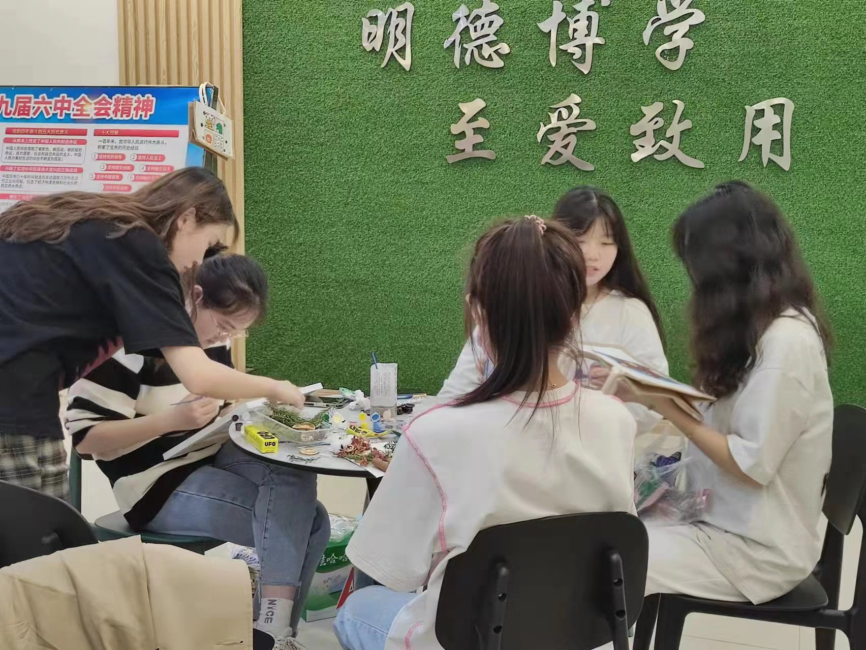 2022年5月1日明德书院第一次团体解压通识实践课——“妙手巧心”手工团体课程于书院前厅顺利开课,书院心理辅导老师带领部分学生参加了此次课程。