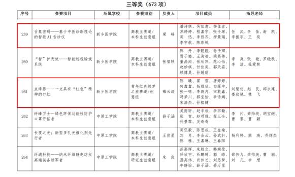 此次比赛中,我院报送作品《农田让农甜——以“多元化”农产品科技赋能豫南大别山乡村振兴》荣获省级一等奖,《智愈先锋——基于体感网的康复用外骨骼机器人》荣获省级二等奖,《点绛唇——一支具有“红色”精神的口红》《舌象密码——基于中医诊断理论的智能AI舌诊仪》荣获省级三等奖。