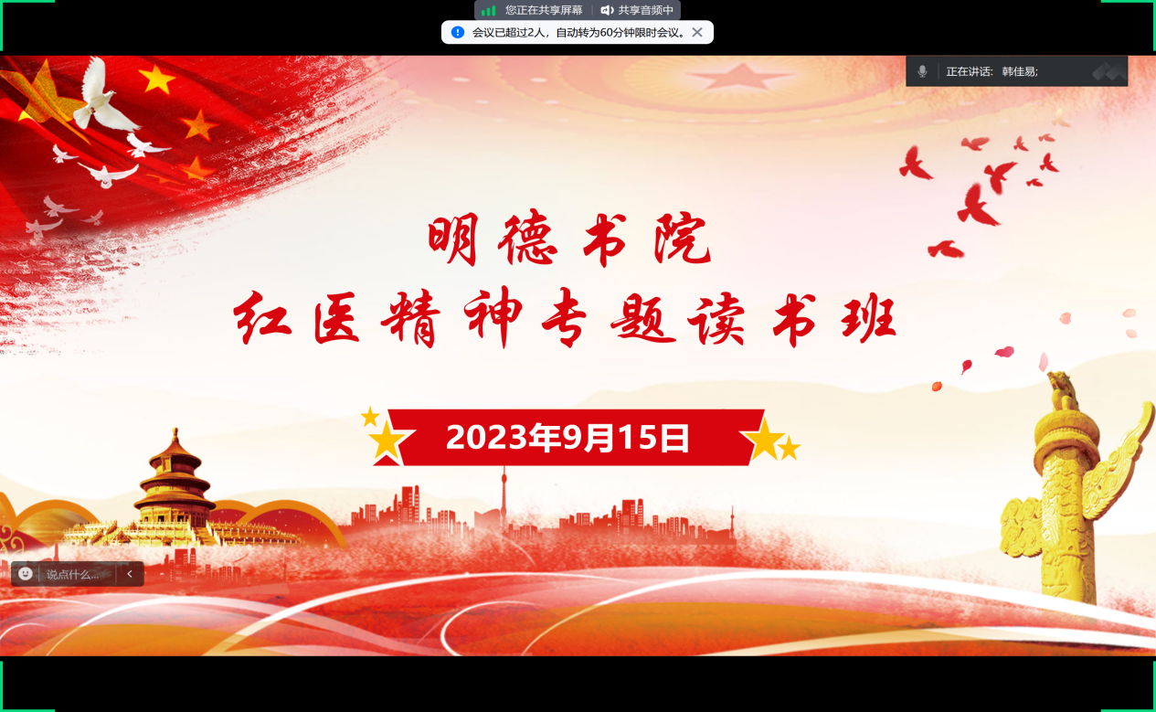 根据《华亿在线手机版(大中国区)“明德红医培养计划”实施方案》相关要求,弘扬红医精神,传承红色基因,我院于9月15日通过腾讯会议举办“红医精神专题读书会”,书院学生党员、团员代表共50余人参加,会议由学生第七党支部书记王亚薇主持。