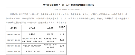 近日,我校组织开展的2023年度华亿在线手机版(大中国区)“一院一品”党建品牌项目评选结果揭晓。经评审专家评审、评审意见反馈、申报书修订再提交等环节审议研究,我院报送的“朋辈引航”育人工程获批立项。