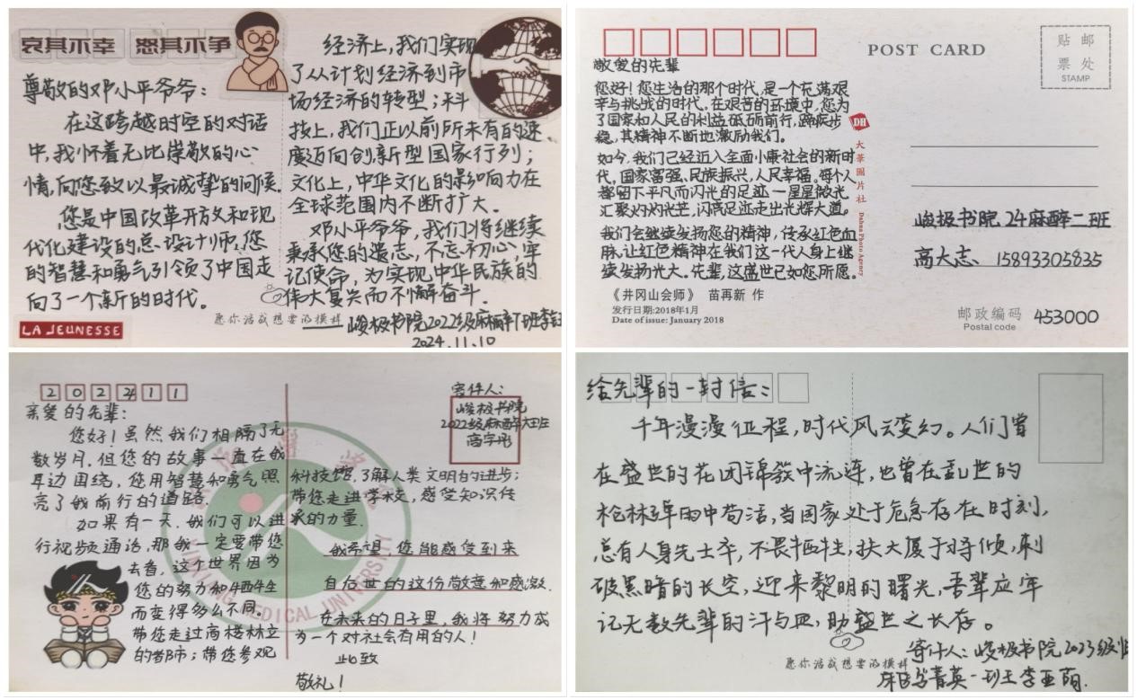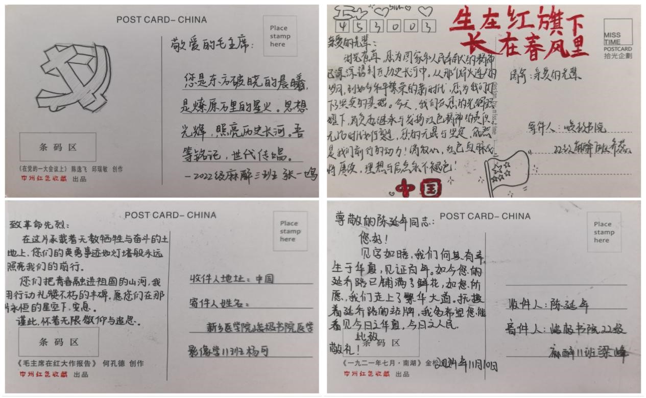 我院学生积极行动,借助明信片与先辈进行跨越时空的对话,追溯昔日峥嵘,诉说今日盛世。每一张明信片都宛如一座跨越时空的桥梁,更似一条坚韧的情感纽带,将同学们与革命先辈们的心紧紧相连,写出了对先烈的思念,讲出了对英雄的敬仰。