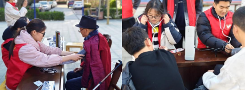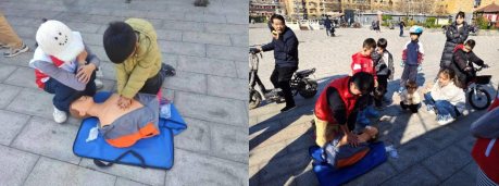 活动现场,志愿者们为居民提供免费的血压、血糖检测,并现场演示心肺复苏术和海姆利希急救法等急救技能,为社区居民送去温暖与力量。