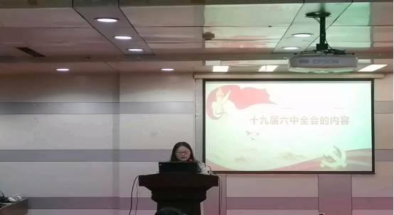本次大会由组织部成员李文静主持。会议包含三个部分,首先同学们一同观看了中央委员会总书记习近平的重要讲话;随后李文静同学对会议内容做出了总结,从全会的重要事项,提出内容和党中央号召这几个方面带领学生进一步了解党的精神;会议最后,徐宝杰、李佳蔚、杜一帆、黄富祥四位同学结合会议精神和自身经历发表了自己的学习感悟。