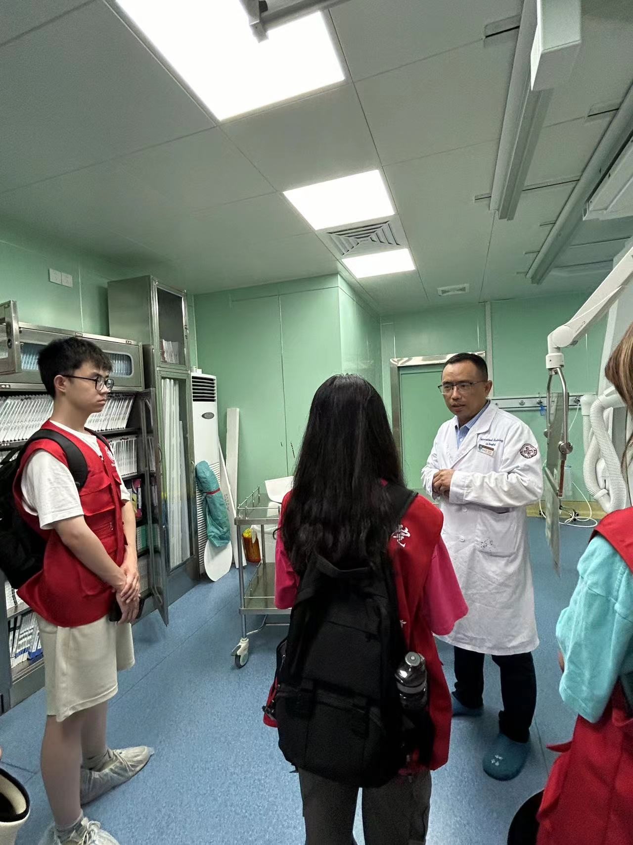行进途中崔老师将自己的学医经验和行医感悟娓娓道来,内容风趣幽默、引人致胜。此外,崔老师还十分严谨的请各科室在班医师对不同仪器在诊疗过程中的注意事项、应用技巧等与同学们进行了深入交流。