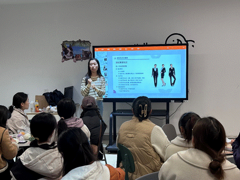 在职场礼仪主题经验分享环节,书院辅导员导师李文妮为同学们讲解了职场礼仪及求职面试应试技巧。李老师通过将自身经历与课堂教学经验结合,从职场工作角度详细认真的为同学们进行分享,重点讲解了男士、女士着正装的原则,工作及求职应试技巧,不同场合下社交注意事项等实用知识。