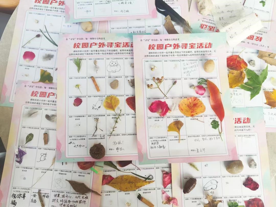 所谓“宝物”,即能够在校园内被找到的任何物品,它可以是一片落叶,一片羽毛,或是一颗石子等等。这些宝物一直存在于校园生活中却不易被发现,通过奔跑在校园中寻找这些大自然的“宝藏”,同学们不仅提升了身体素质,增加了观察力和想象力,而且也感受到了独属“深秋”的校园魅力。