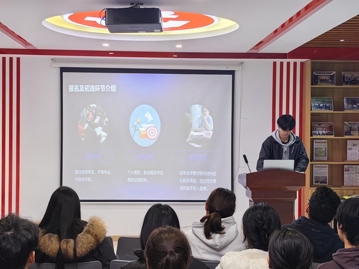此次培训不仅涵盖本届职业规划大赛赛事解读、框架结构拆解、材料制作技巧和现场演讲经验分享等多个方面,主讲人王志宝还从赛前准备、职业规划书撰写要点、备赛材料制作以及比赛中的实用技巧分享等多个方面进行了深入讲解。