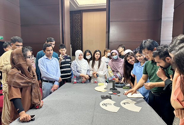 为进一步学习宣传贯彻党的二十大精神,传承和弘扬书法文化、书法艺术等中华传统文化,用文字作为桥梁,促进中外学生交流。7月4日下午,我院师生与国际教育学院留学生,联合医学人文学院相关教师共28人前往平原博物院,开展“国际交流融通 汉字书写相拥”学习交流活动。