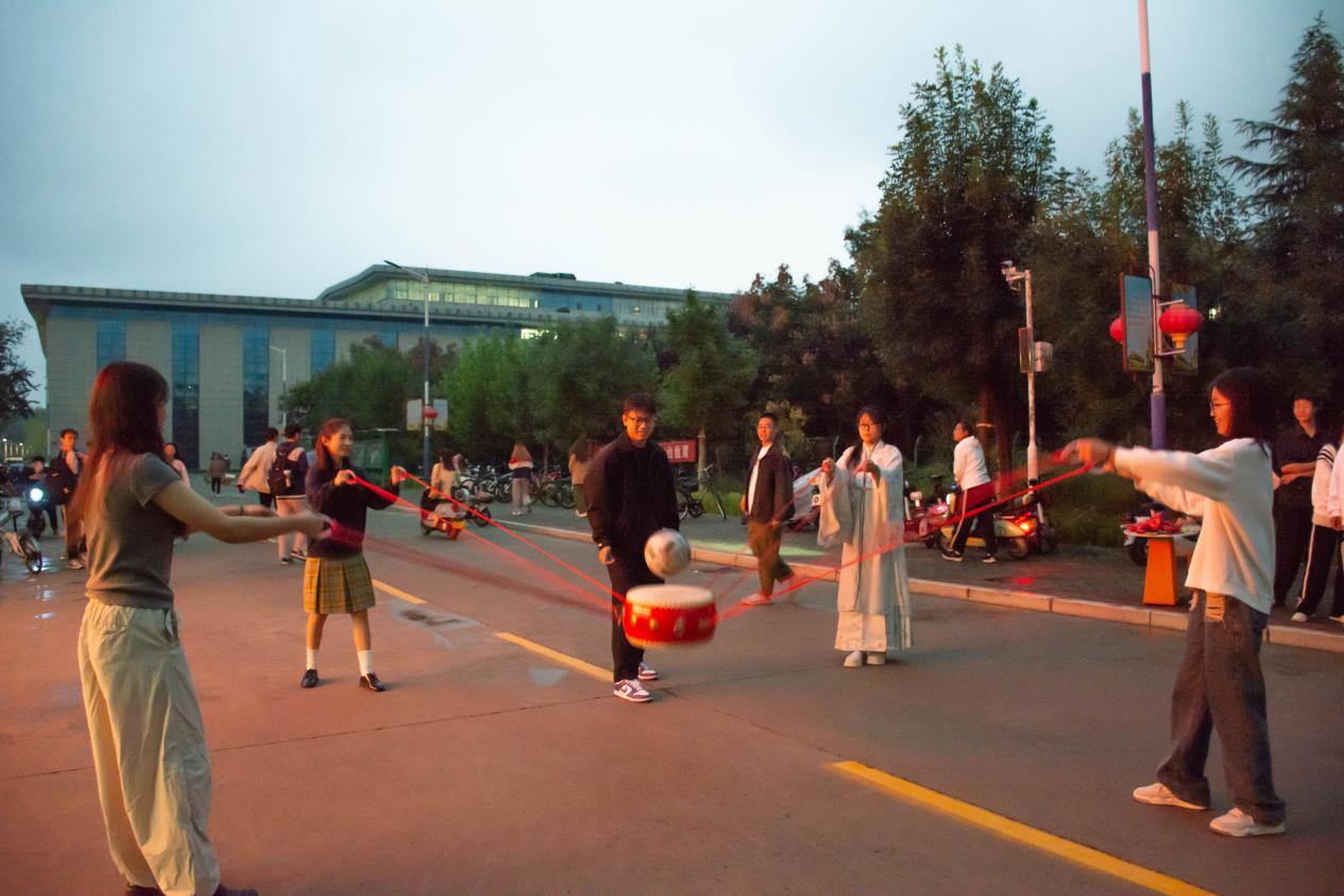 “游戏会友”环节,书院特选取“投壶会友”“同心鼓”“盲人击鼓”等充满传统意义的游戏。同学们在游戏过程中不仅体验了同心协作的乐趣,还学习到了传统游戏文化。