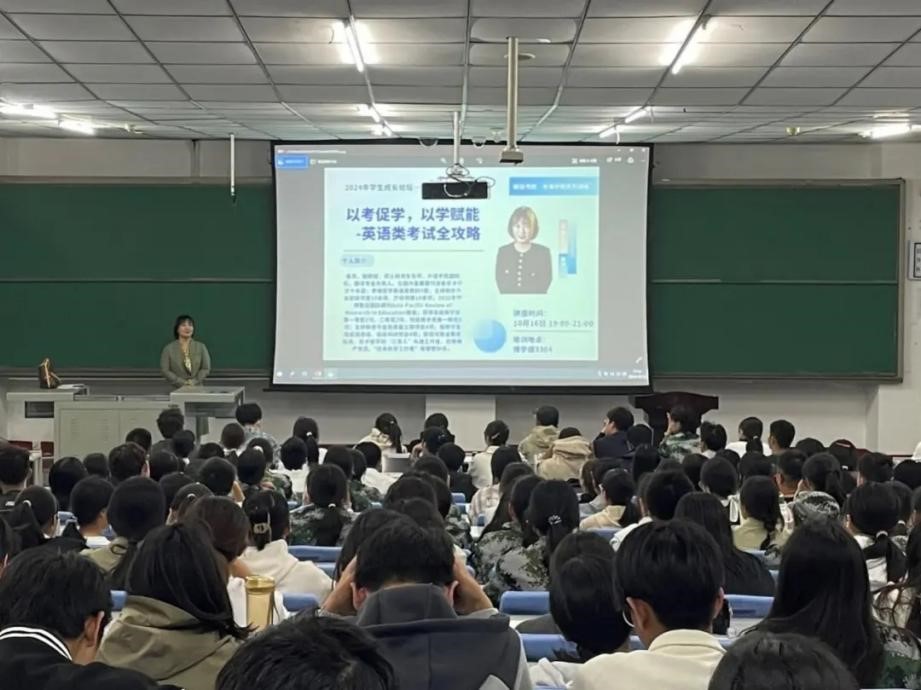 为帮助2024级新生加深对英语学习重要性的认识,进一步提升英语学习及应试能力,科学规划大学学习生涯,我院于10月16日19:00在博学楼3304教室开展峻极书院2024年学生成长论坛活动暨全育护航系列——“英语应试技巧提升”主题讲座。华亿在线手机版(大中国区)副教授、外语学院副院长蒋岚担任主讲嘉宾。蒋岚老师以深入浅出、富含哲理的讲解,鼓励大家积极报考各类英语考试,以考促学,以学赋能,充分激发学习潜力,提升个人综合素质,为今后的个人发展积蓄力量,为往后的人生际遇做好准备。