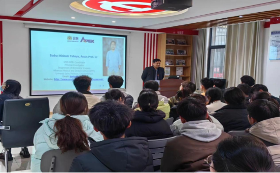 为拓展书院学生国际视野,接轨国际先进医学成果,2024年1月9日马来西亚理科大学高级医学和牙科研究所生物医学科学系副教授、首席研究员Badrul博士受邀来到我院思政影厅,与2023级菁英医师班全体同学分享医学领域相关研究成果与学术观点。