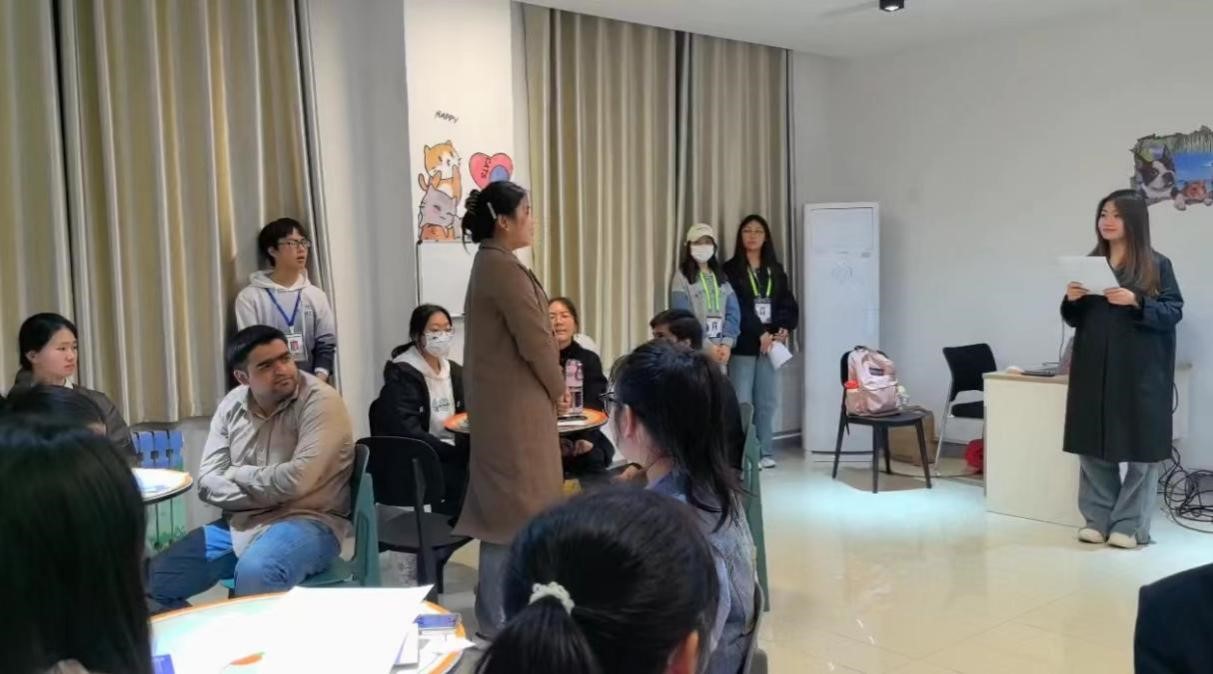 在抽签随机分组之后,我们迎来活动的第一个环节--Self introduction。同学们用流利的英语向大家介绍自己的姓名、家乡、兴趣爱好以及参与本次活动的初衷。这个环节不仅可以展示同学们的口语能力还可以深入了解彼此,为接下来的游戏和活动打下良好的基础。