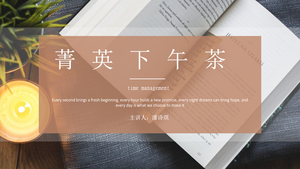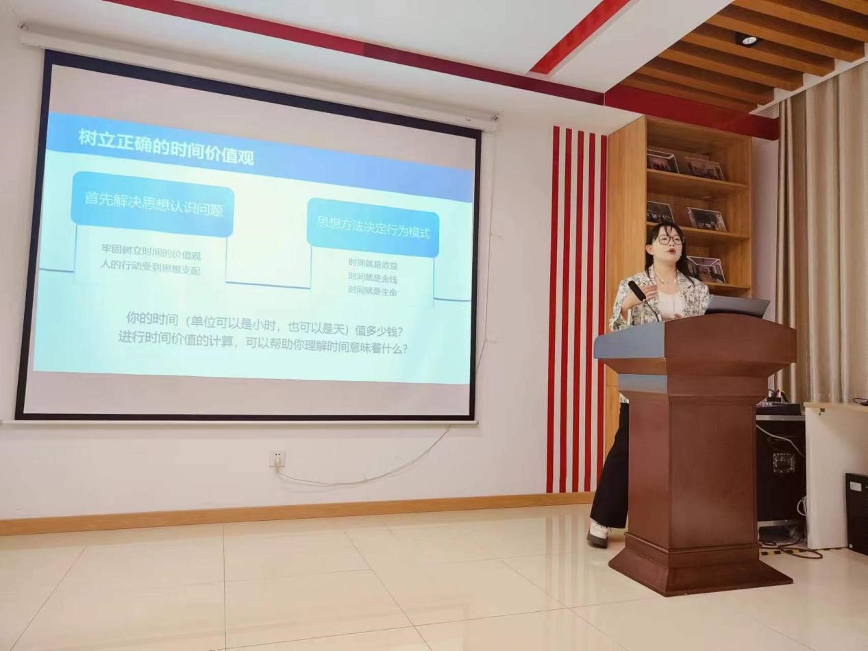 活动最后,她用一句话作为结尾:“成为一个优秀的人之前先成为自己”,勉励大家保持积极的心态,追求更好的时间管理以获得在学习和生活中属于自己的成功。
