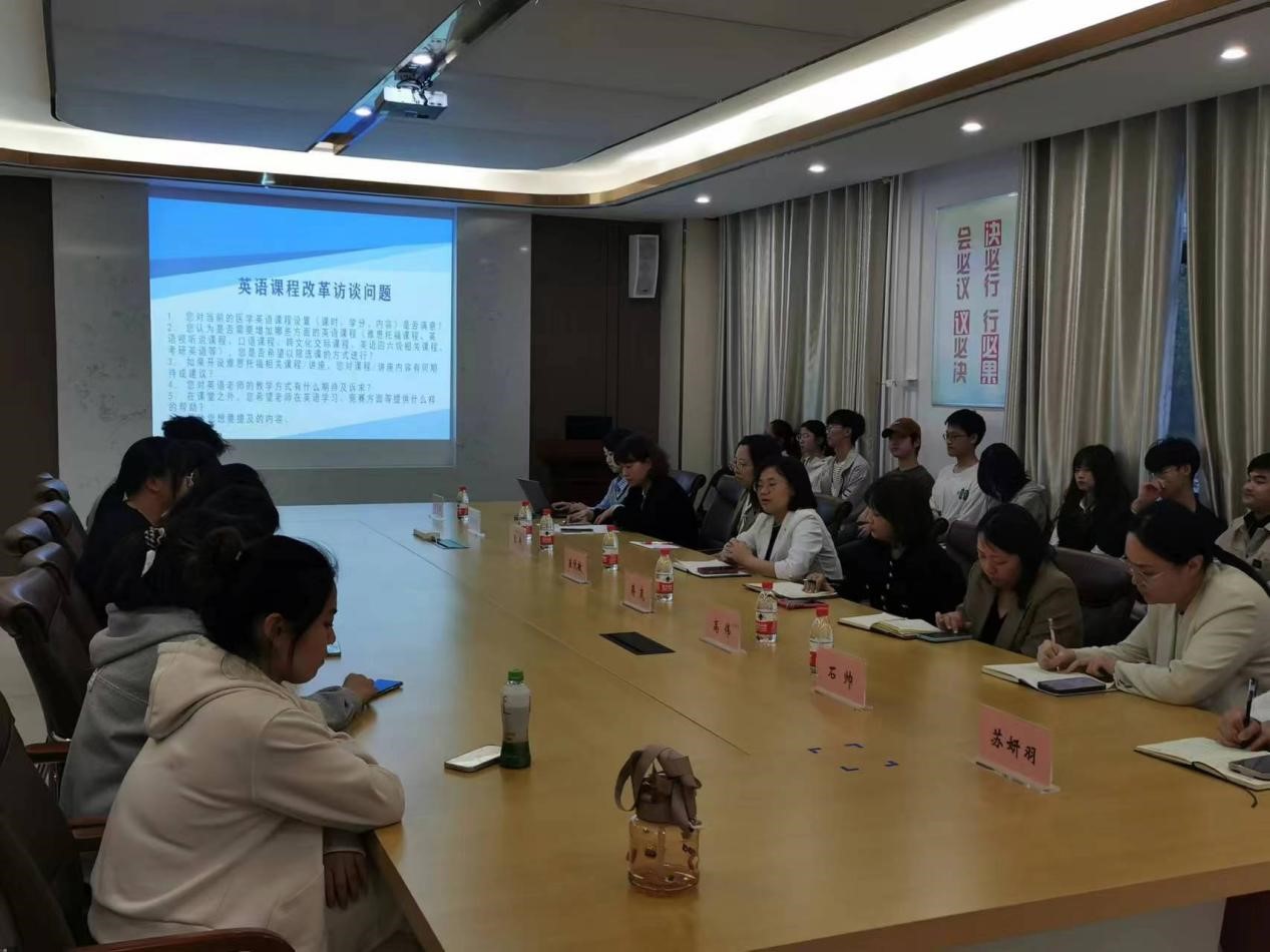2024年4月29日下午18:00,为提高我校菁英医师班学生英语能力,拓展国际视野,进一步促进师生交流,更好地推动学风教风建设,外语学院、国际教育学院联合我院共同开展菁英医师班国际化需求调研访谈会,针对英语课程改革、国际化需求问题开展讨论。外语学院、国际教育学院相关负责人及峻极书院菁英医师班全体辅导员与学生代表参加访谈。