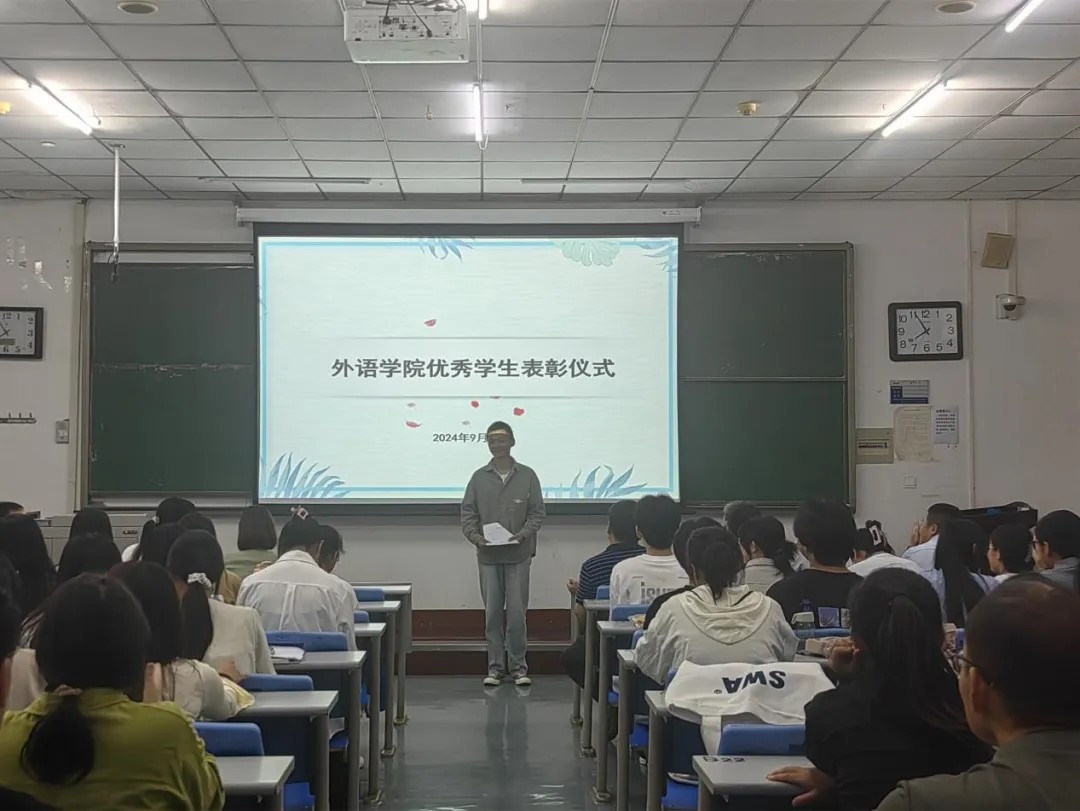 紧接着,由优秀学生代表2022级翻译班陈继萌发言,他以自己的经历告诉学弟学妹们要养成良好的生活习惯,做好各项规划、处理好人际关系,通过合作实现共赢发展。